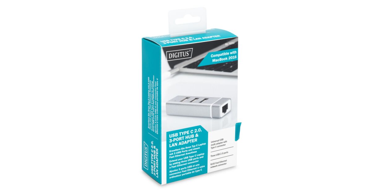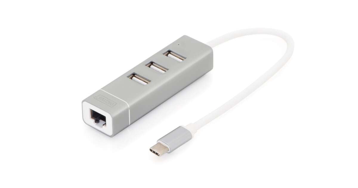 DIGITUS USB Typ-C Ethernet Adapter + 3 Port USB HUB Beschreibung