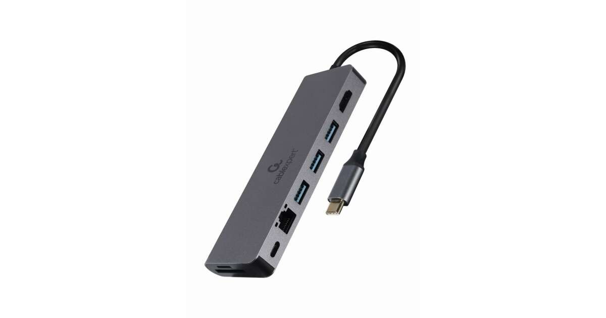 GEMBIRD A-CM-COMBO5-05 USB-Hubadapter mit mehreren Anschlüssen, Typ C, 5-in-1-Hubadapter, HDMI, PD, Kartenleser, LAN