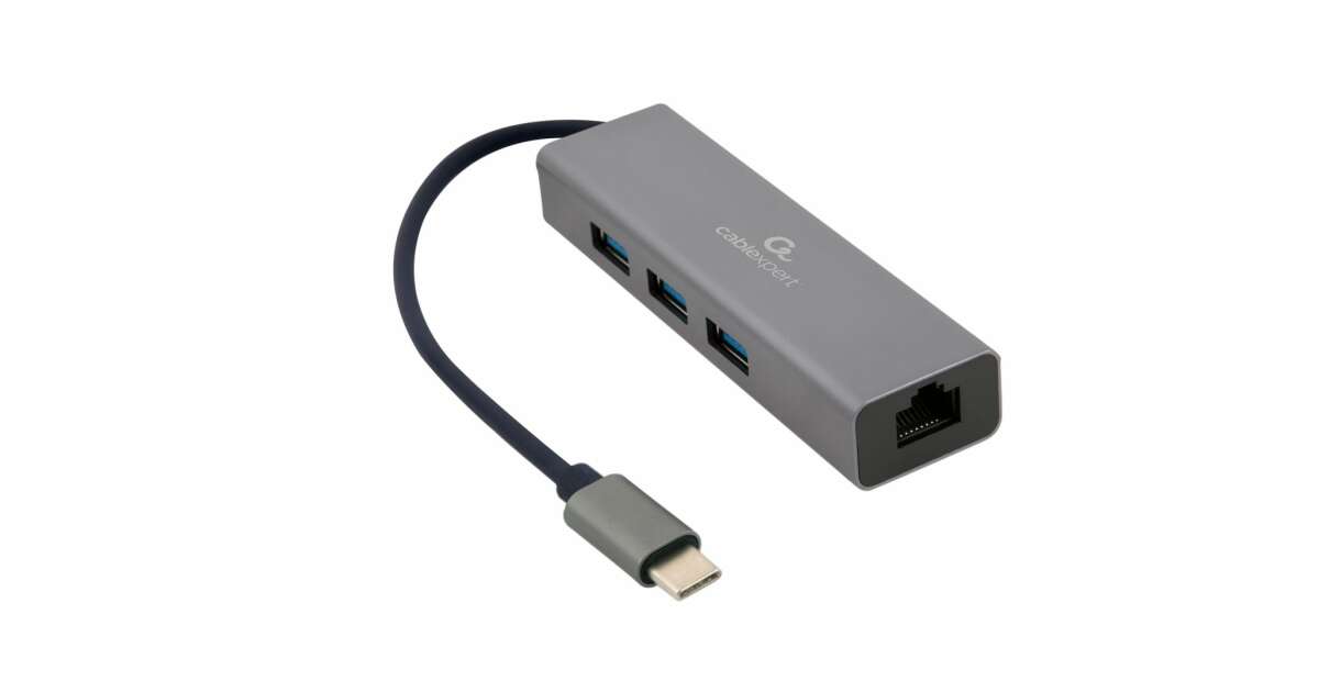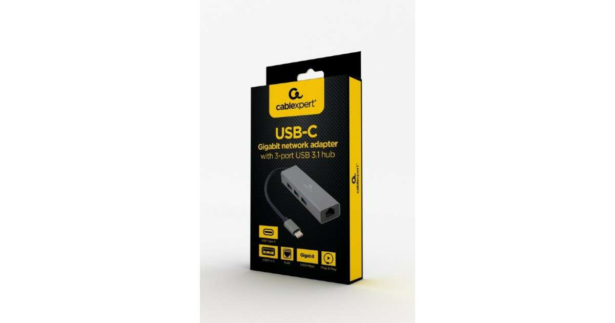 GEMBIRD A-CMU3-LAN-01 USB-C-Gigabit-Netzwerkadapter mit 3-Port-USB 3.1-Hub