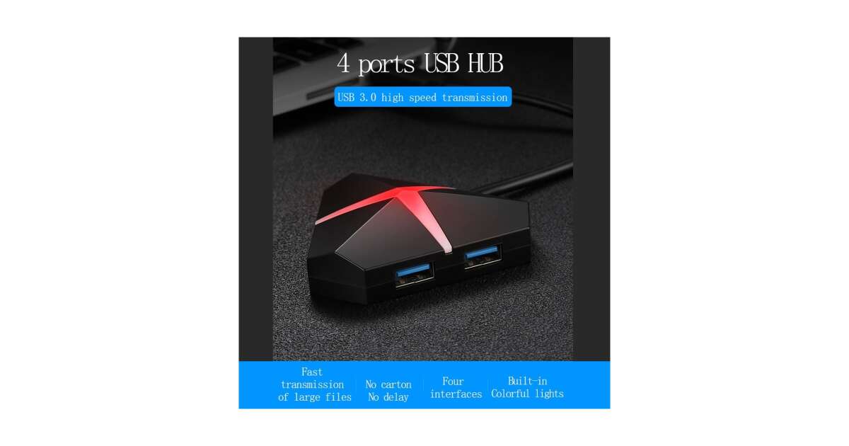 Hub-Splitter, Envisage, Switch-Adapter 4 USB 3-Anschlüsse, Kabelverbindung über USB 3, Pihen UFO 5 Gbit/s, LED-Beleuchtung, schwarz