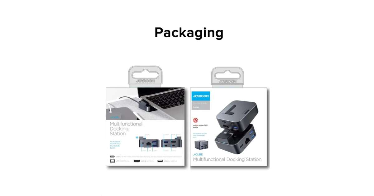 Der Joyroom J-Cube ist ein multifunktionaler USB-C Hub und Ständer in einem, der perfekt zum Apple MacBook Pro passt. Er verbessert die Luftzirkulation des Laptops und verhindert so eine Überhitzung, während er gleichzeitig zusätzliche Anschlüsse für ein bequemeres Arbeiten bietet. Dank seines ergonomischen Designs ist das Arbeiten am Gerät komfortabler und die Wirbelsäule wird weniger belastet.