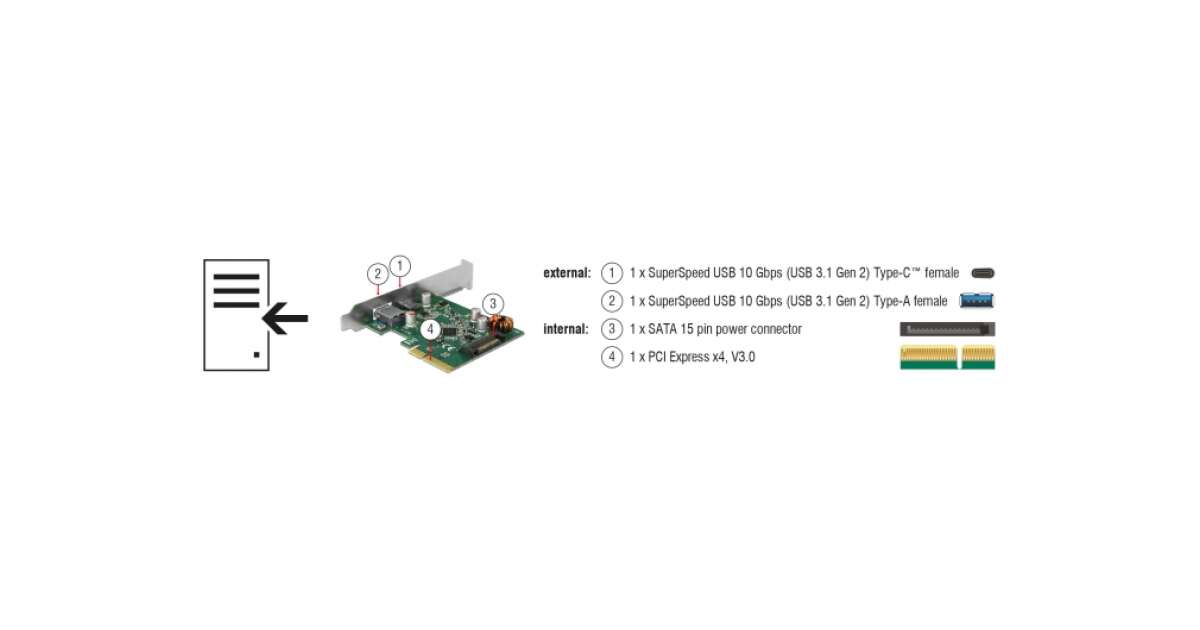 DELOCK PCI Expr. Card > 1x USB-C + 1x USB-A USB3.1 Gen 2 Beschreibung