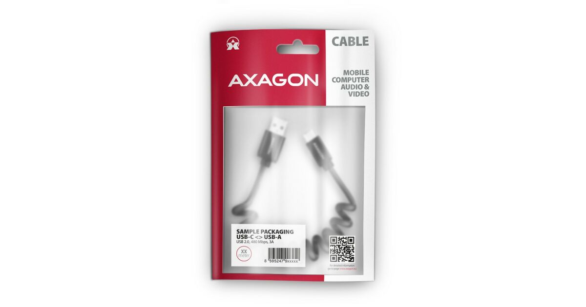 AXAGON BUCM-AM20TB Spiralkabel, USB-C zu USB-A, 1 m, USB 2.0, 2.4 A, ALU, PVC - Schwarz