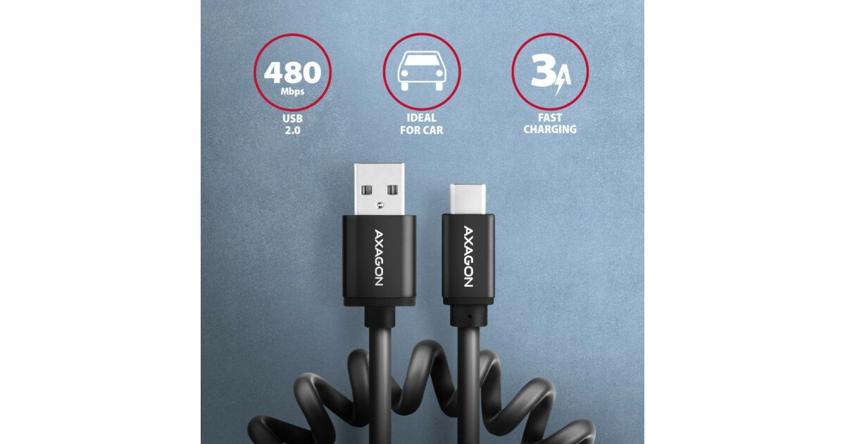 AXAGON BUCM-AM20TB Spiralkabel, USB-C zu USB-A, 1 m, USB 2.0, 2.4 A, ALU, PVC - Schwarz Meinungen