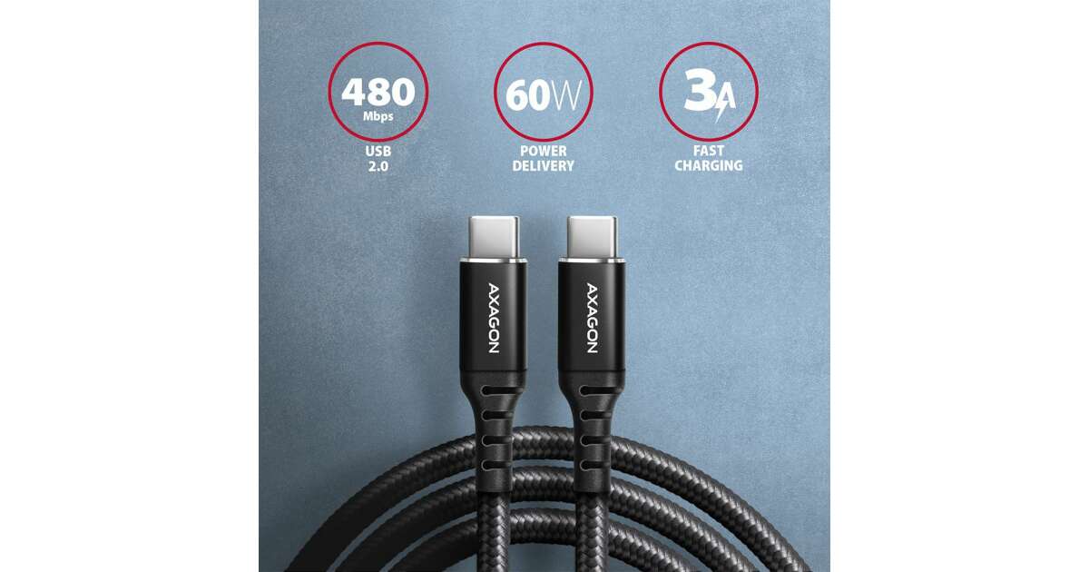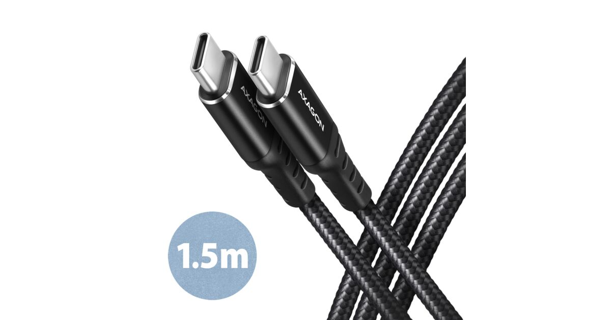 AXAGON BUCM-CM15AB USB-C zu USB-C 2.0 Kabel, 1,5m, PD 60W, 3A, geflochten - schwarz