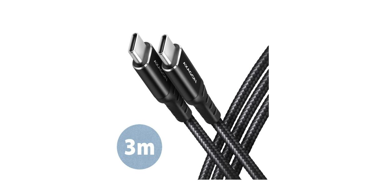 AXAGON BUCM-CM30AB USB-C zu USB-C 2.0 Kabel, 3 m, PD 60W, 3A, geflochten - schwarz