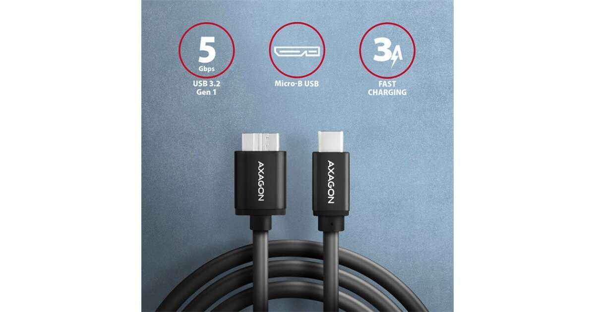 AXAGON BUMM3-CM10AB Kabel Micro-B USB auf USB-C 3.2 Gen 1, schwarz - 1m