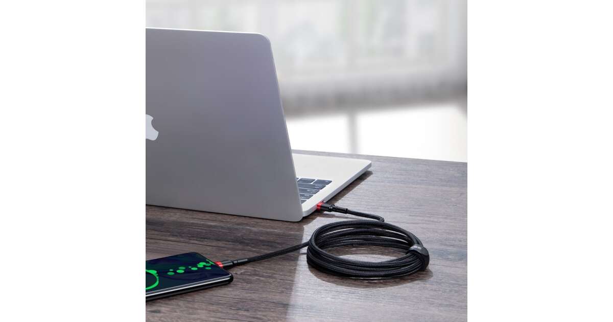 Dieses 2 Meter lange Baseus Cafule USB-C Kabel unterstützt 100W Power Delivery (PD) 2.0 und Quick Charge (QC) 3.0 Technologie, sodass du dein Laptop, dein Handy und andere Geräte mit Type-C Anschluss blitzschnell aufladen kannst. Die hochwertige TPE-, Aluminium- und Kevlar-Ummantelung macht das Kabel robust und langlebig, sodass du lange von der zuverlässigen Leistung profitieren kannst.
