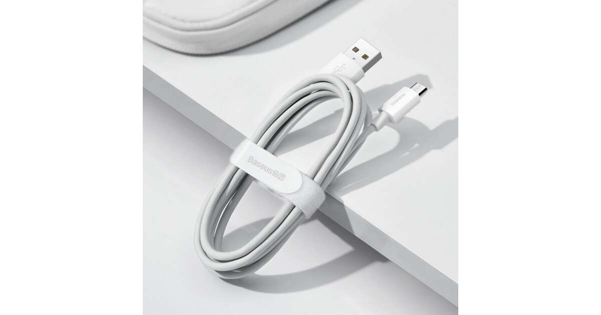 Baseus Simple Wisdom Datenkabelset, USB auf Micro-USB, 2,1A, 1,5m, 2 Stk., weiß Beschreibung