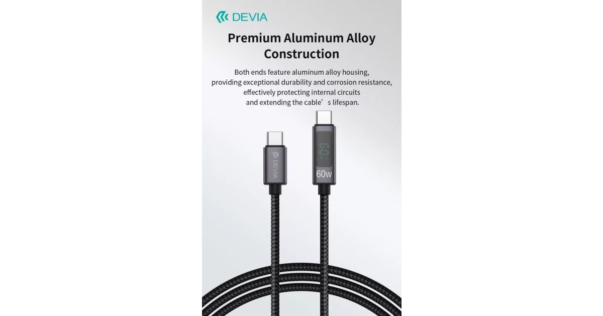 Devia Extreme Speed 60W PD Type-C/Type-C Kabel mit Display: Blitzschnelles Laden und Datenübertragung ⚡️