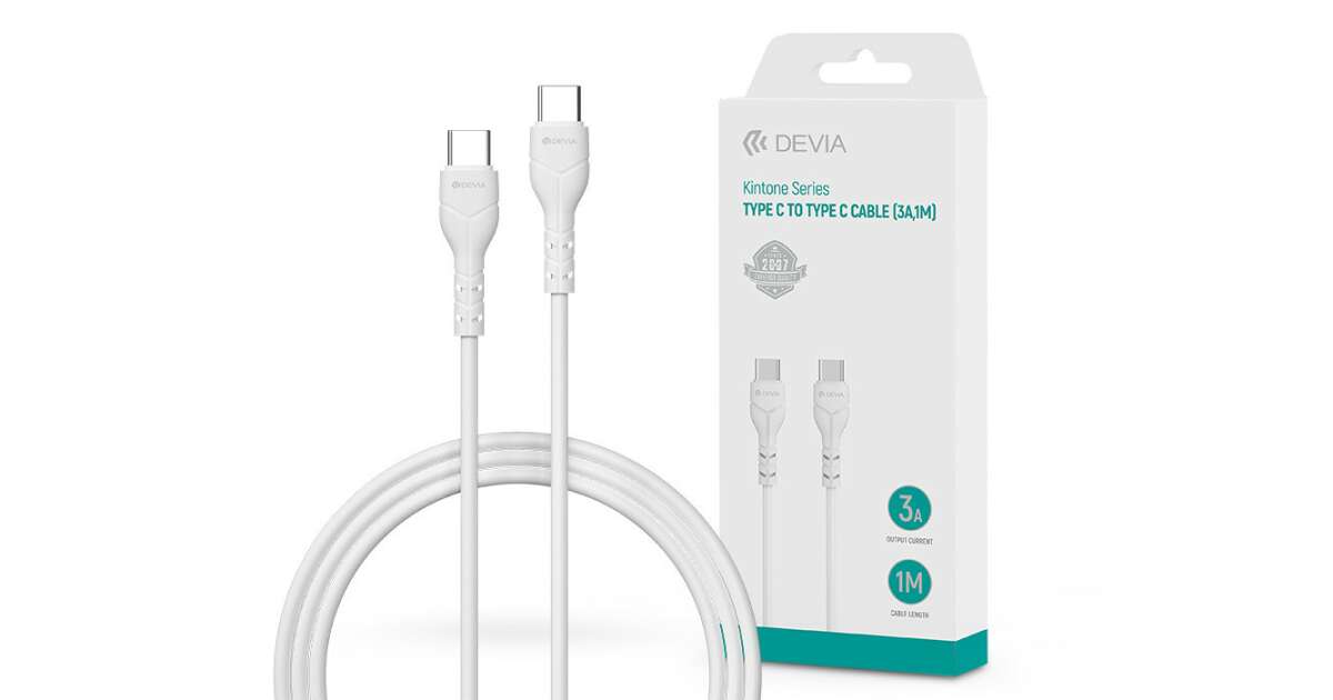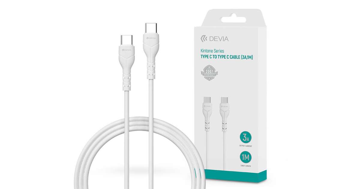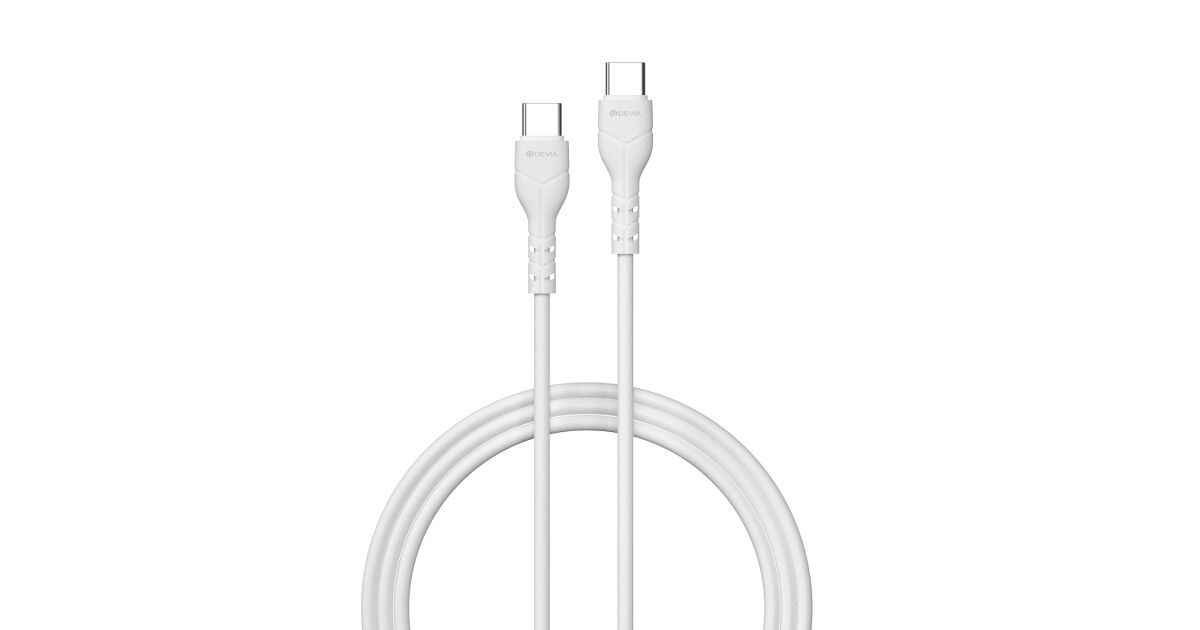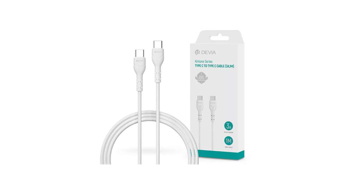 -Devia USB Typ-C – USB-Typ-C-Daten- und Ladekabel mit 1 m Kabel – Typ-C-zu-Typ-C-Kabel der Devia Kintone-Serie – 60 W – Weiß Beschreibung
