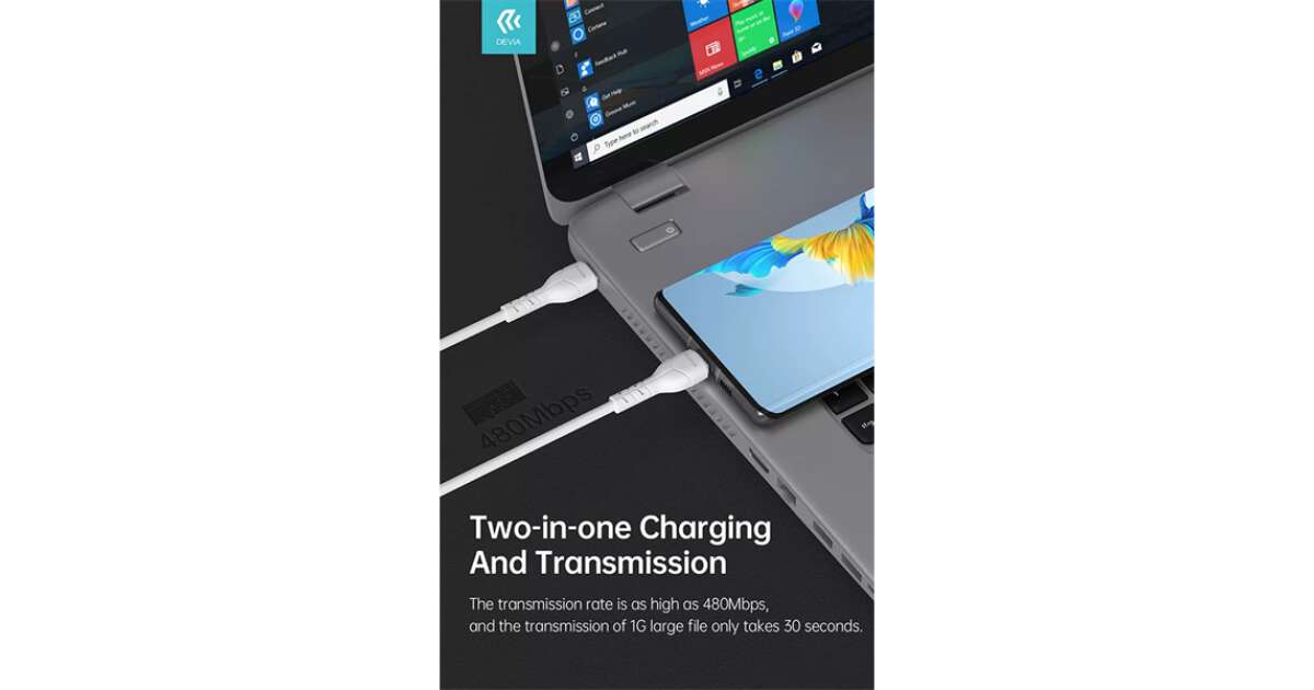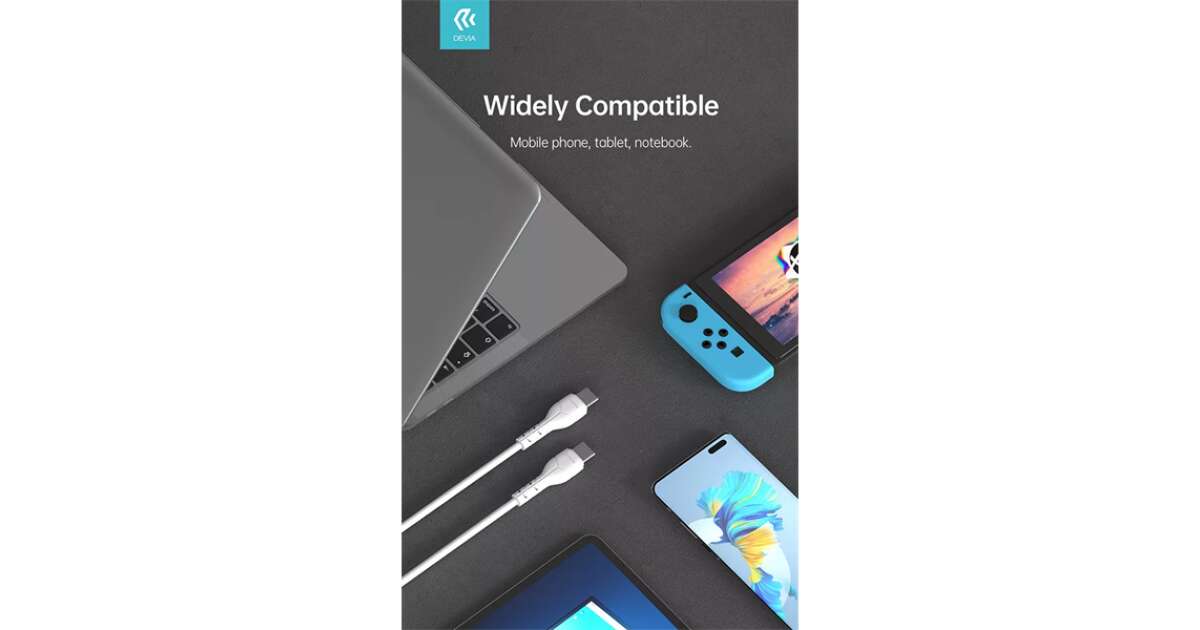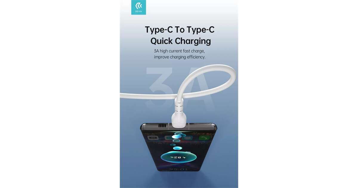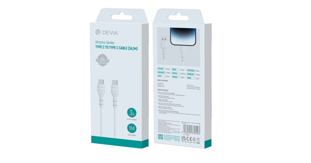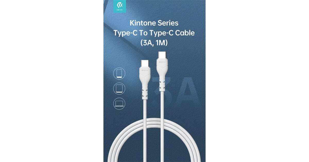 -Devia USB Typ-C – USB-Typ-C-Daten- und Ladekabel mit 1 m Kabel – Typ-C-zu-Typ-C-Kabel der Devia Kintone-Serie – 60 W – Weiß Beschreibung