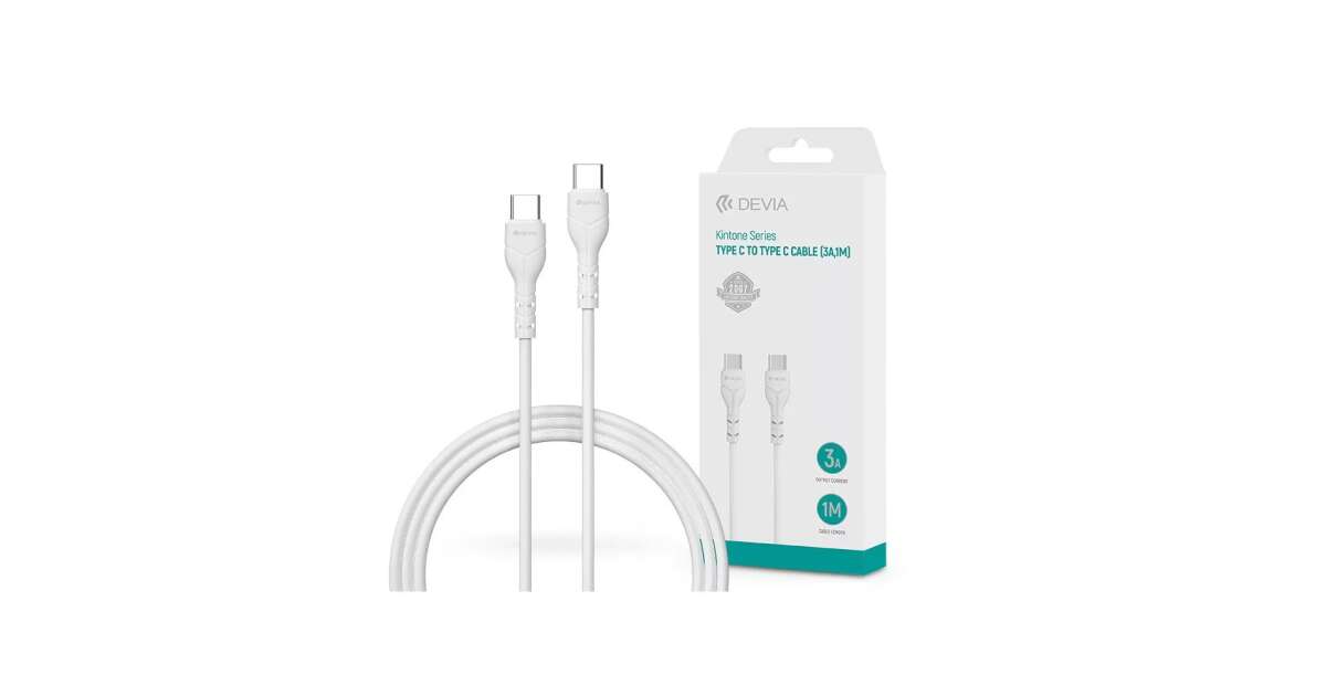 Devia USB Typ-C – USB-Typ-C-Daten- und Ladekabel mit 1 m Kabel – Typ-C-zu-Typ-C-Kabel der Devia Kintone-Serie – 60 W – Weiß