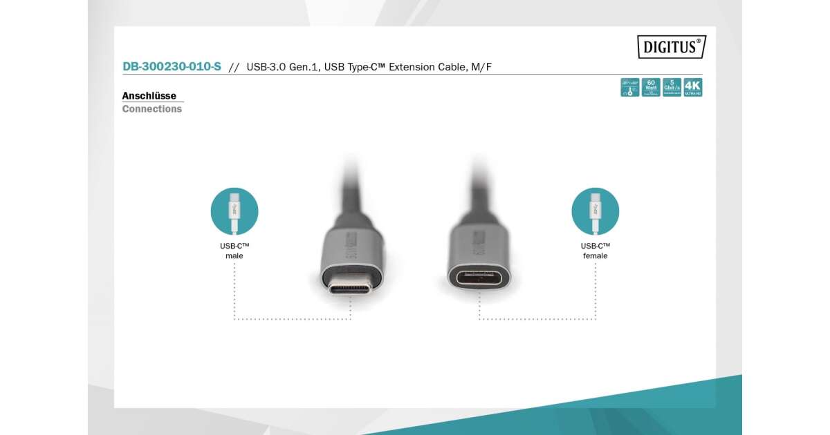Digitus USB-C Verlängerungskabel: 1 Meter, schnelle Datenübertragung ⚡️