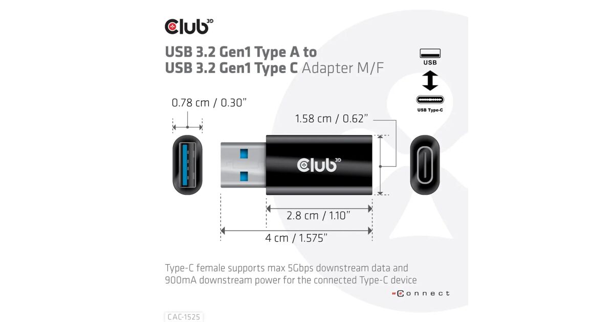CLUB3D USB 3.2 Gen1 Typ-A auf Typ-C Adapter: Einfache Datenübertragung zwischen USB-A- und USB-C-Geräten