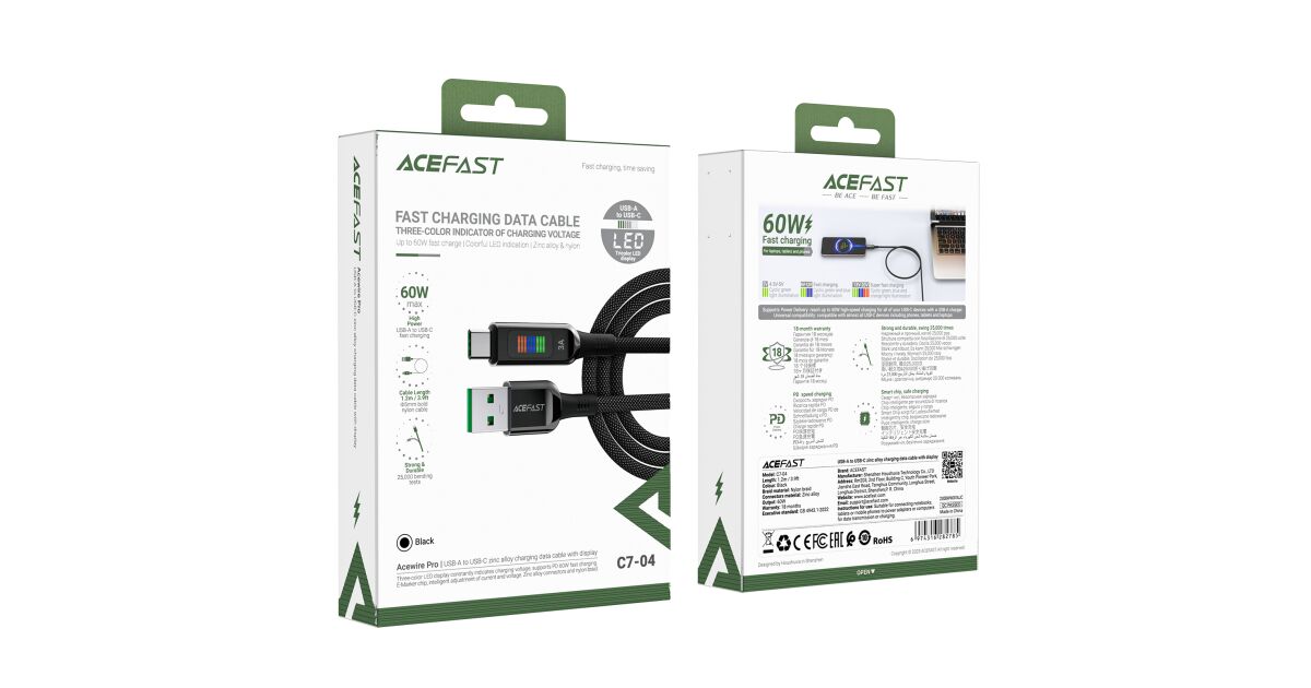 Acefast C7-04 USB-C/USB-A Kabel: Mit Schnellladeanzeige ⚡