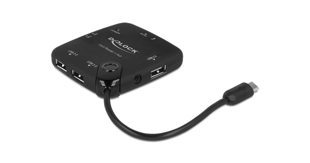 DELOCK Card Reader USB micro B -> 4in1 +3-Port Hub OTG extern