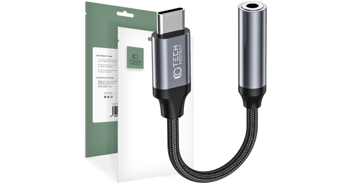 Tech-Protect Typ-C – 3,5-mm-Klinkenadapter – Tech-Protect UltraBoost Typ-C-auf-3,5-mm-Klinkenadapter – Schwarz/Grau Beschreibung