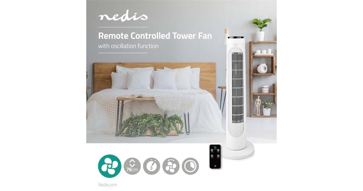 Nedis Turmventilator, programmierbarer Säulenventilator, EXTRA QUIET OPERATION Turmventilator 3-stufig oszillierend 50 W Fernbedienung FNTR13CWT40