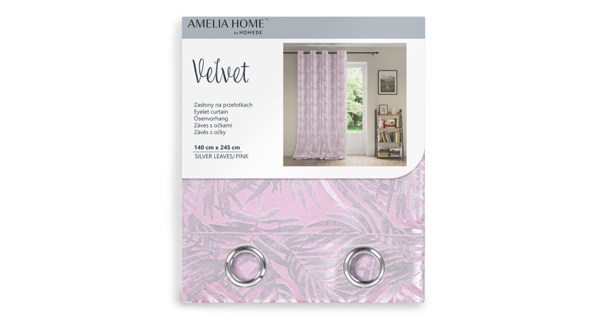 Verleihe deinem Zuhause Eleganz und Gemütlichkeit mit dem AmeliaHome Silverleaves Verdunkelungsvorhang! Dieser wunderschöne, puderrosa Samtvorhang mit silbernem Glamour-Druck verleiht jedem Raum einen einzigartigen Stil.