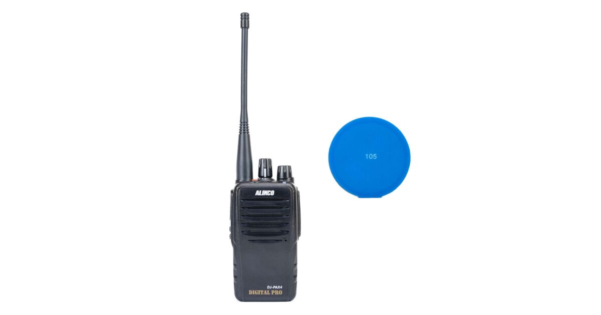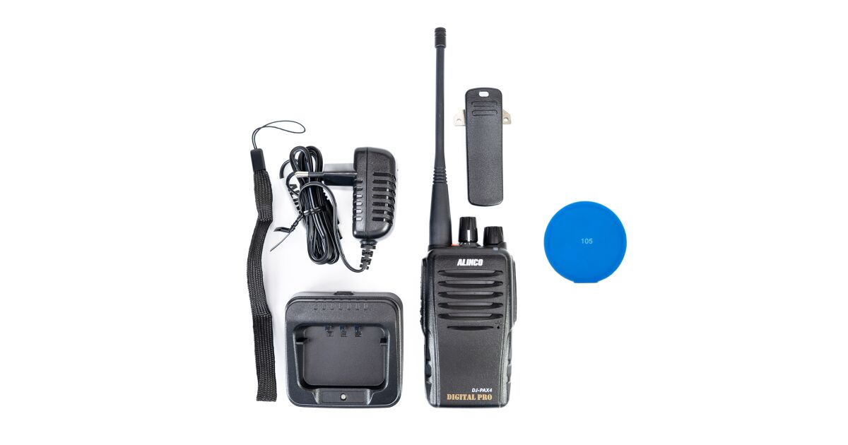 PNI Alinco DJ-PAX4 PMR446 Dual Mode Analog-Digital Portable Radio Station Kit, VOX, TOT, IP67, 1800mAh Akku + Sticky Pad Blau Geschenk Beschreibung