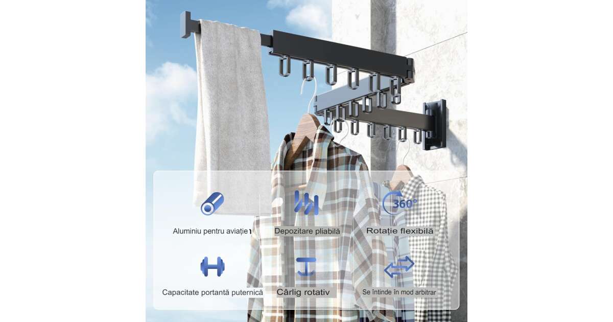 Platzersparnis: Das innovative dreifach faltbare Design des Ständers ermöglicht eine erhebliche Platzersparnisă Raum. Die klappbaren Arme und die 18 J-förmigen Haken machen diesen Wäscheständer zu einer äußerst effizienten Lösung. Bei Nichtgebrauch kann die Halterung nah an die Wand geklappt werden und nimmt so nur wenig Platz ein.
