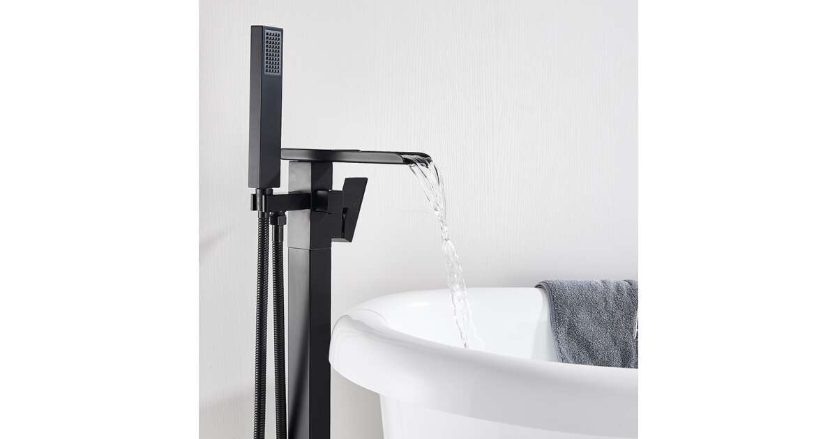 Freistehender Badewannenhahn, Blackswan, Wasserfalltyp M32, mattschwarzes Modell, Größe 98 cm Beschreibung