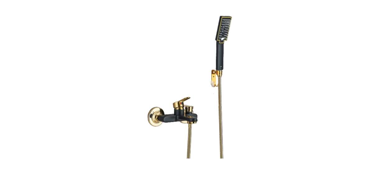 Wannenmischer, Blackswan, Typ M98, mattschwarz/glänzendes Goldmodell mit 3-Wege-Brause, Größe 18 cm