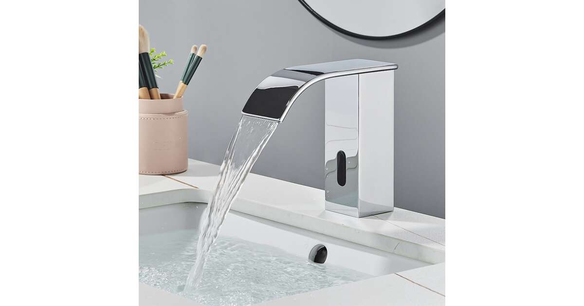 Waschbeckenarmatur, Blackswan, Typ M185, kurzes Chrommodell mit Wasserfallhahn und Sensor, Größe 15 cm