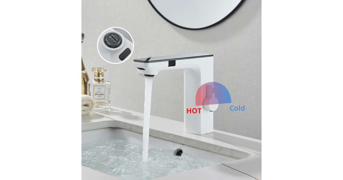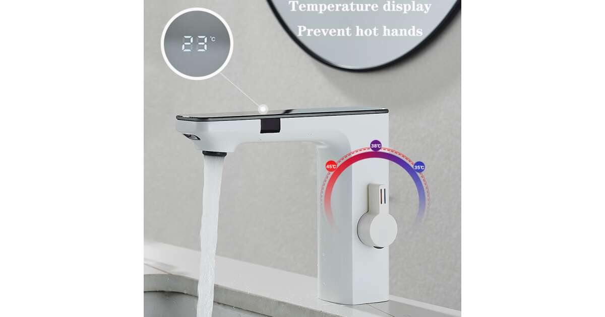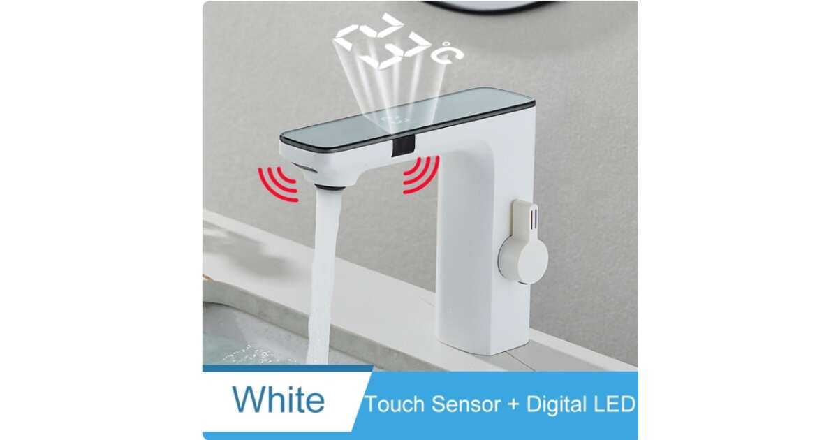 Touchscreen-Wasserhahn mit LED-Display – Weiß, Modernes Design ✨