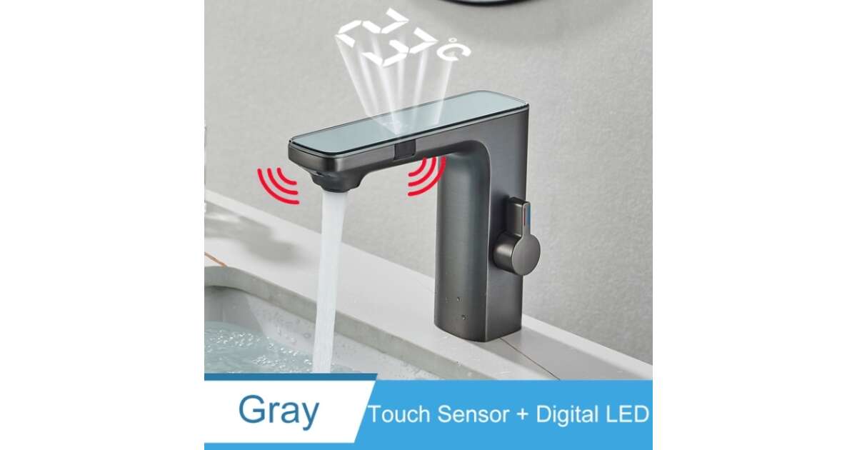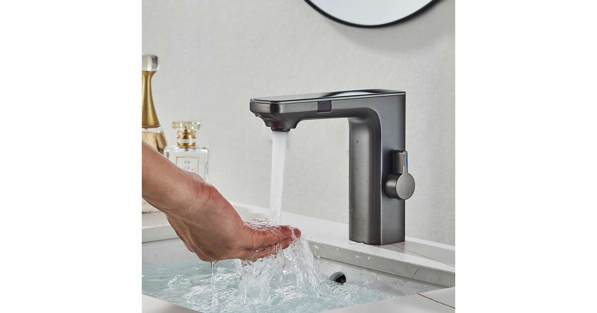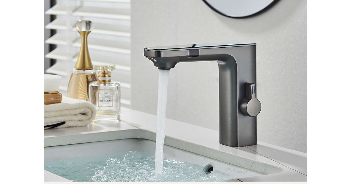 Waschbeckenarmatur, Blackswan, Typ M226, anthrazitgraues Modell, mit LCD-Display und Sensor, Größe 18 cm Beschreibung