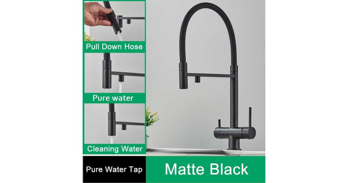 Diese stylische, matt schwarze Küchenarmatur ist nicht nur wunderschön, sondern auch super praktisch! Mit skandinavischem Design und einem um 360° drehbaren, flexiblen Auslauf passt sie perfekt in jede Küche. Sie hat zwei Betriebsmodi: Normal und gefiltertes Wasser, damit du immer Wasser in bester Qualität zum Kochen und Trinken hast.