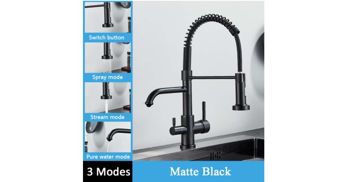 Blackswan M94 Küchenarmatur: Matt Schwarz, 2 Strahlarten, gefiltertes Wasser 💦