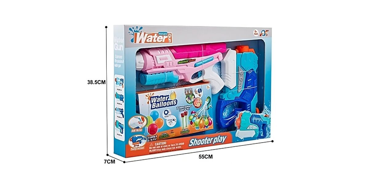 - 💦 Zwei farbenfrohe Wasserpistolen (blau und rosa)