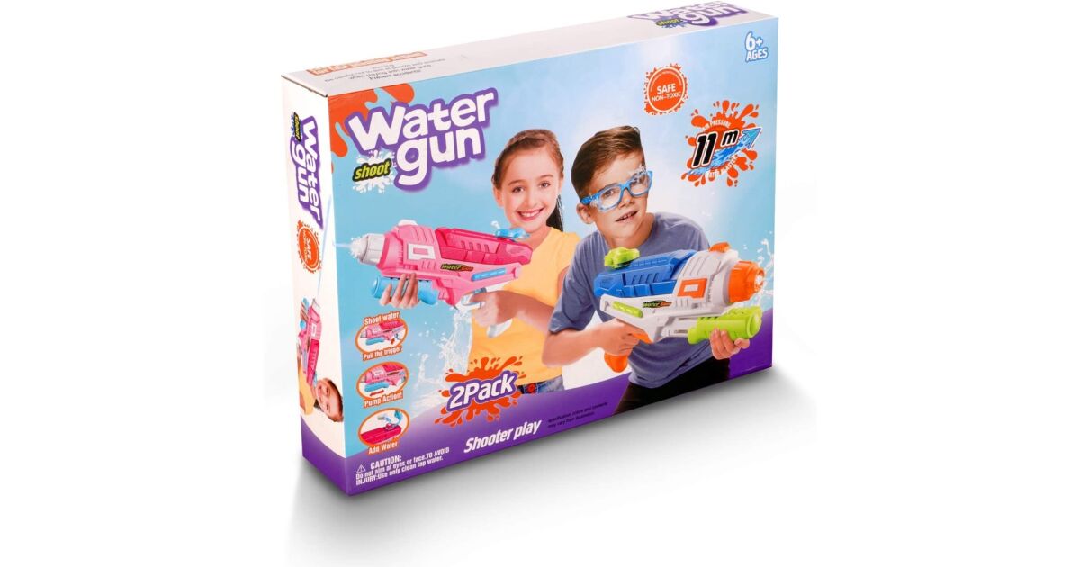Mach dich bereit für epische Wasserschlachten mit diesem 2er-Pack Wasserpistolen! Empfohlen ab 6 Jahren, bieten sie perfekten Spaß für Kinder am Strand, am Pool oder im Garten.