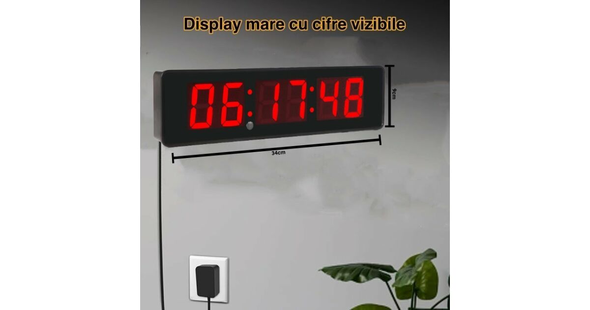 Digitale Tisch- und Wanduhr mit rotem LED-Licht, Stoppuhr, Timer, Wecker, einstellbare Helligkeit, 34x9cm Beschreibung