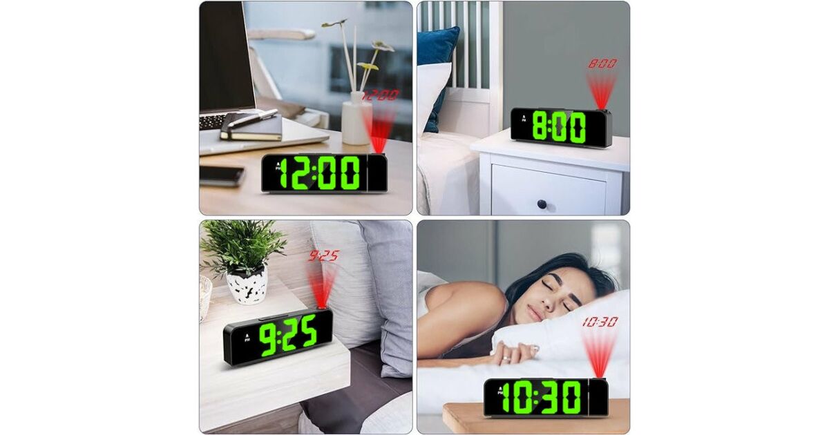 Digitale Tischuhr mit grüner LED-Anzeige und Projektion: Die Zeit immer im Blick! ⏰