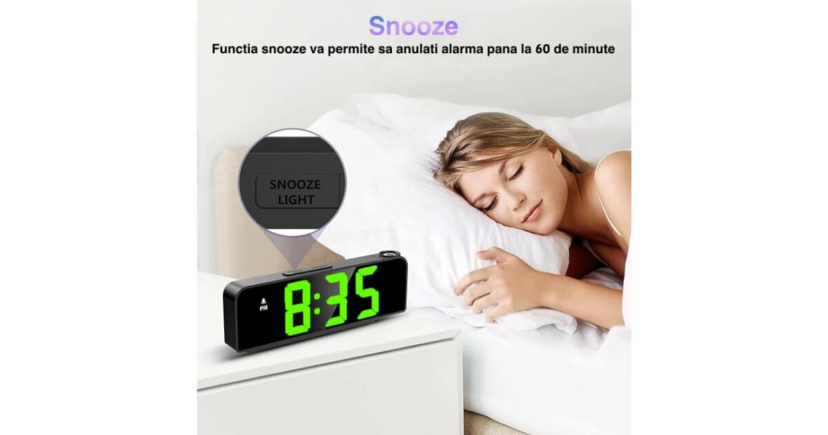 - Alarmfunktion mit Schlummerfunktion: Pünktlich aufwachen mit der Möglichkeit, den Alarm zu verschieben.