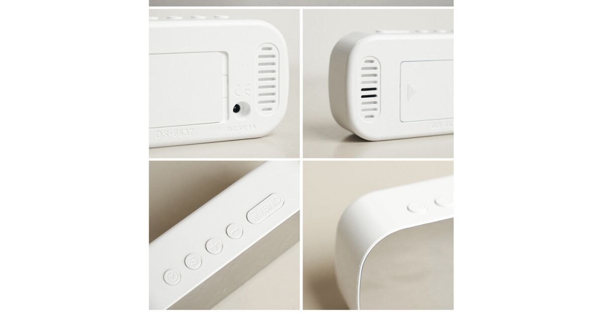 Diese digitale Tischuhr vereint modernes Design mit nützlichen Funktionen und bringt Eleganz und Funktionalität in jeden Raum.