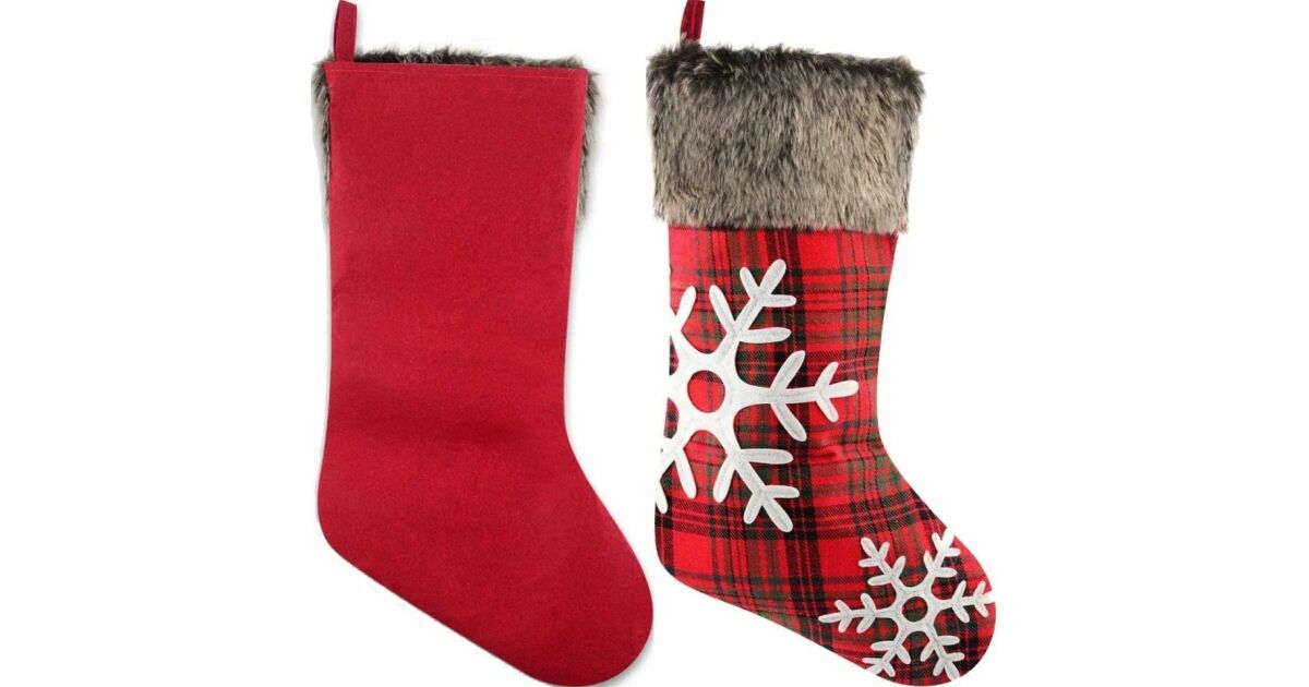 4er Set Wuudi Weihnachtsstrümpfe, Baumwolle, rot/grau, 47,5 x 22 cm Beschreibung