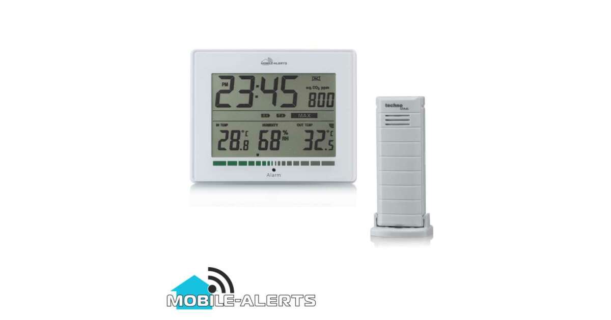 -Technoline MA10402 Raumluftqualitätsmessgerät, Mobile Alerts für Smart Home, TX47 mit Außentemperatursensor Beschreibung