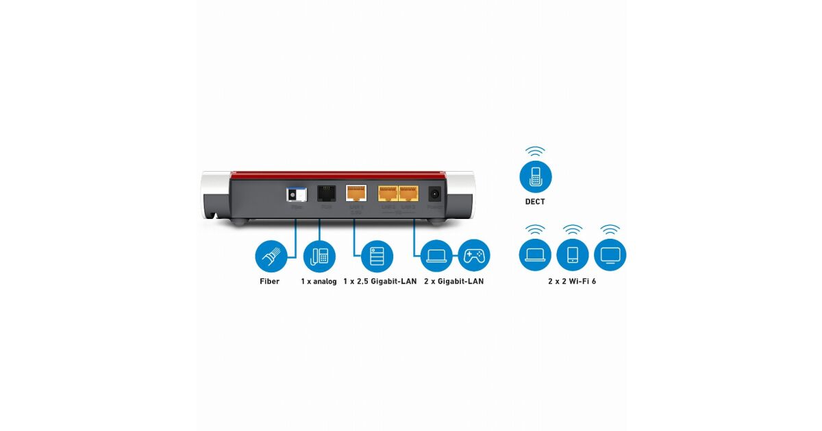 Genießen Sie blitzschnelle Internetgeschwindigkeiten und eine zuverlässige Netzwerkverbindung mit der FRITZ!Box 5530 Fiber! Dieser Wi-Fi 6 Router der neuesten Generation ist die perfekte Wahl für moderne Haushalte, in denen viele Geräte mit dem Netzwerk verbunden sind.