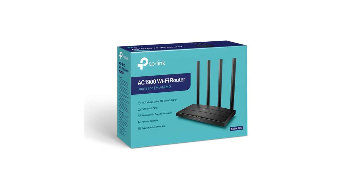 Router TP-Link WiFi AC1900, Archer C80 (600Mbps 2,4GHz + 1300Mbps 5GHz; 4port 1Gbps, 3×3 MIMO) Kaufen: