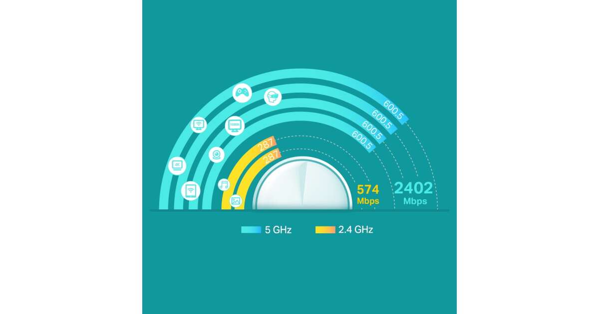 | Geschwindigkeit | 2402 Mbit/s (5 GHz), 574 Mbit/s (2.4 GHz) |