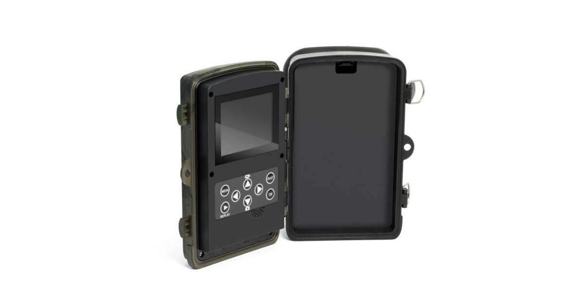 Wildcam Technaxx TX-69 Überwachungskamera, FullHD 1080p, TFT-LCD-Bildschirm 2,4", PIR-Sensor, IR, IP56, microSD, Mikrofon, Lautsprecher, 8xAA/6V 1,5A, Tarnung