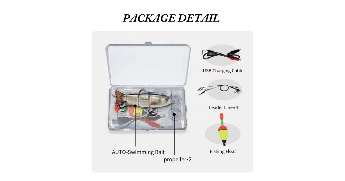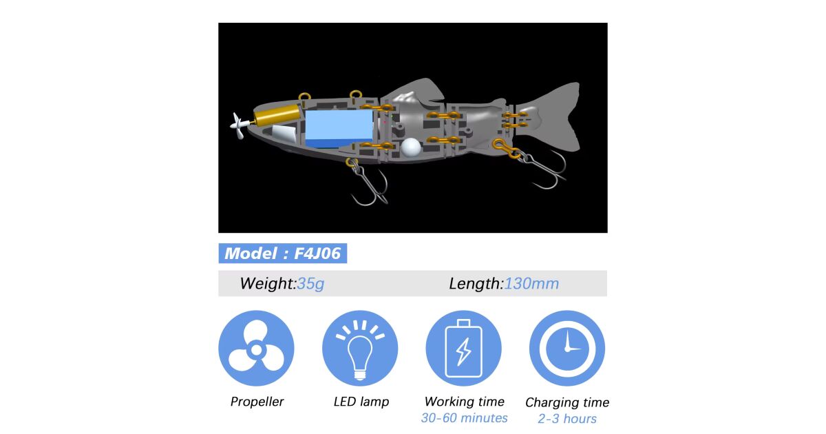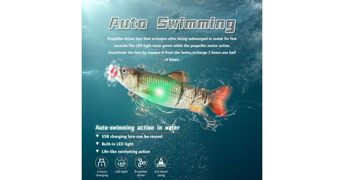 - Automatische Bewegung: Nach dem Einwerfen startet er automatisch und imitiert mit lebensechter Bewegung die Beute. Aus dem Wasser genommen, stoppt er automatisch und spart Energie.