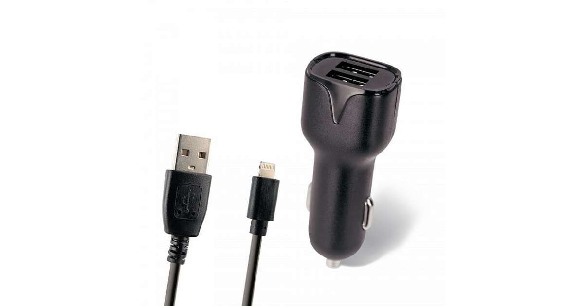 Maxlife 2xUSB szivargyújtó töltő adapter 1 m-es lightning vezetékkel - Maxlife MXCC-01 Lightning 2xUSB Car Fast Charger - 5V/2,4A - fekete Beschreibung