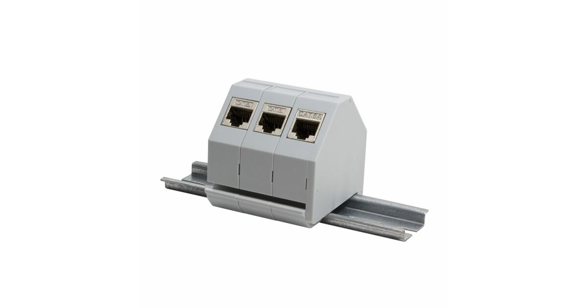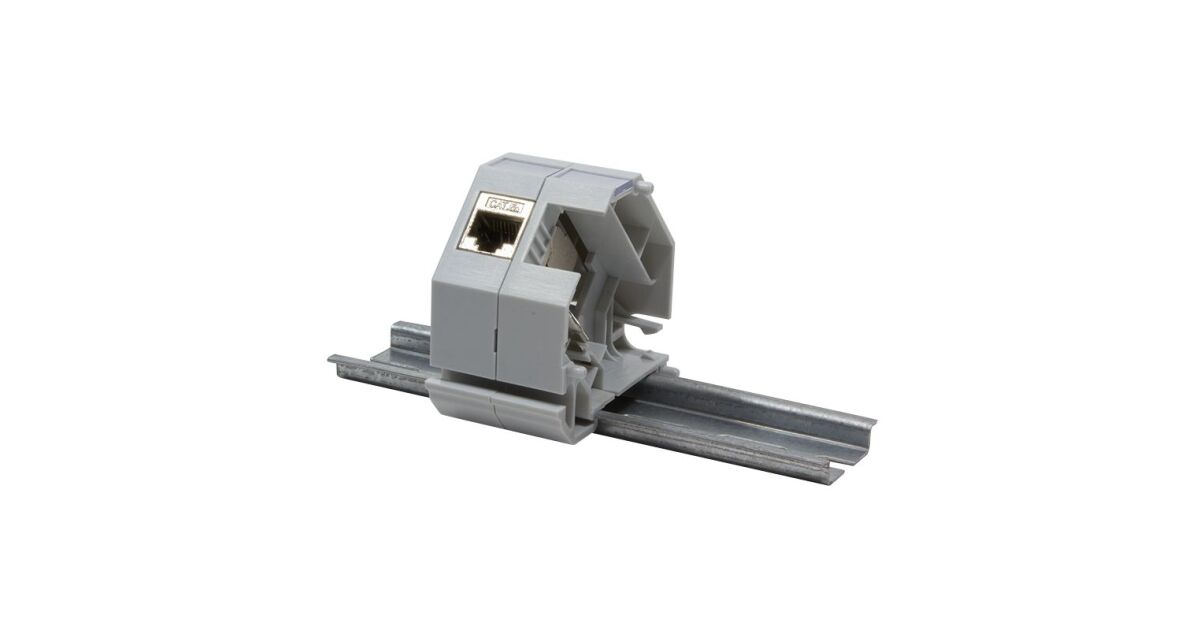 DIN rail adapter / mounting module, expandable for RJ45 Keystone jack modules Cat.5e, Cat.6 and Cat.6A Compatible with standard 35 mm DIN rails With cover and label window Dimensions (WxDxH) with cover: 62.5 x 60.1 x 21.7 mm Dimensions (WxDxH) open on one side: 62.5 x 60.1 x 17.6 mm Material and colour: ABS plastic, light grey