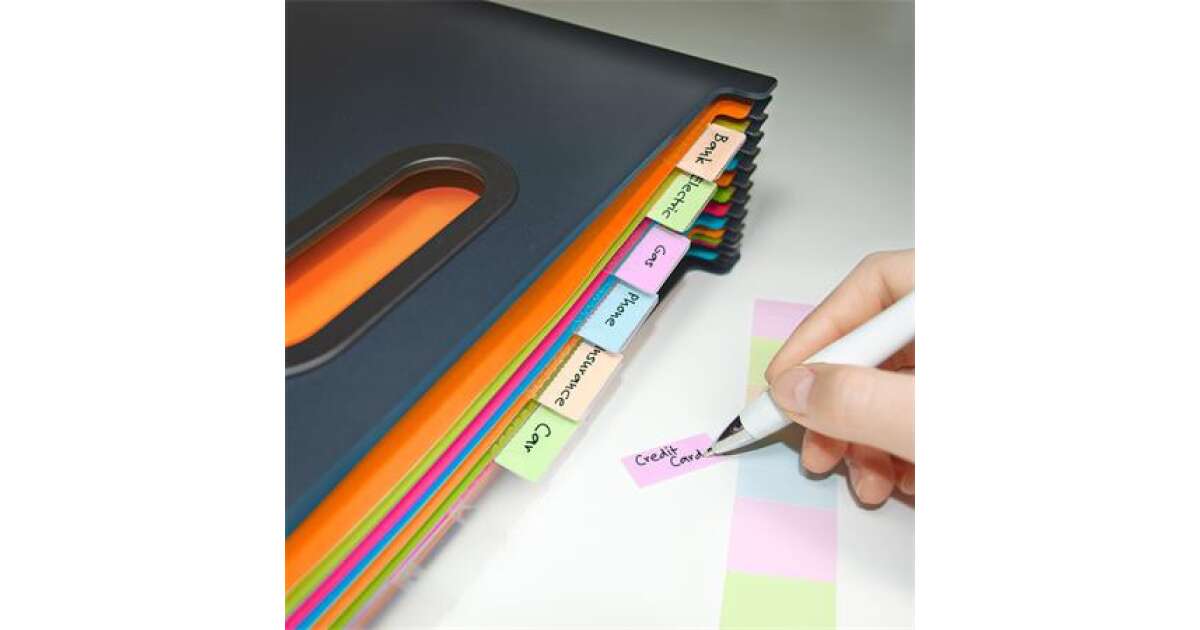 This handy expanding file is the perfect solution for organizing and storing your documents. Thanks to its 13 colorful pockets, you can easily categorize your papers, letters, and other important documents. The sturdy, durable handles make it easy to carry.