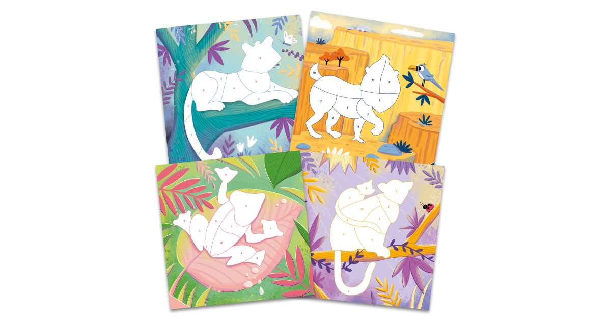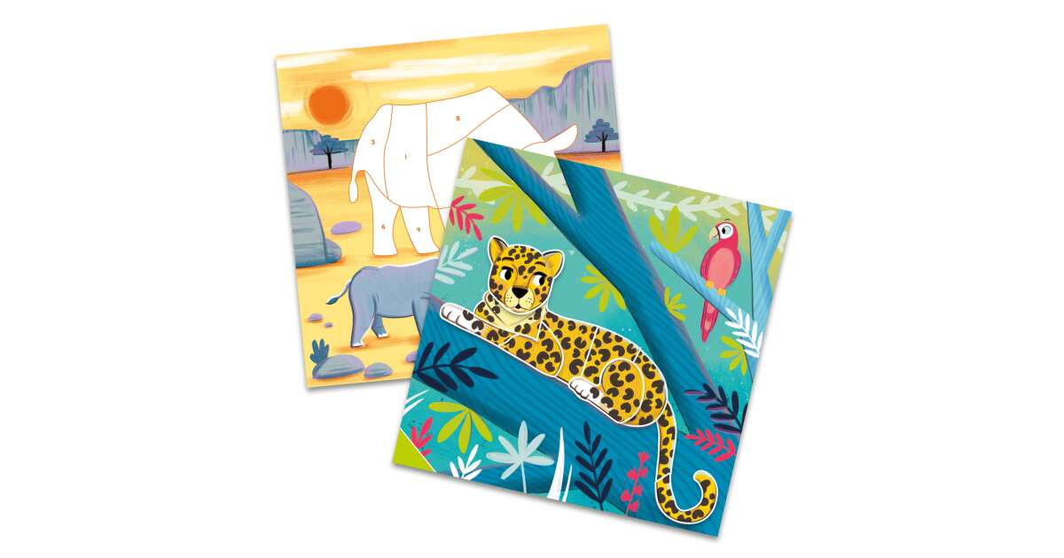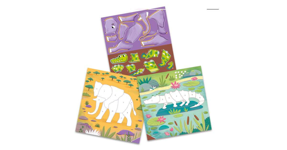 This fun sticker book contains 120 stickers to create 12 colorful wild animal scenes. Kids can use the numbers to place the stickers, developing their fine motor skills, number recognition, and creativity. The stickers are easy to apply and remove, so the game can be used multiple times.